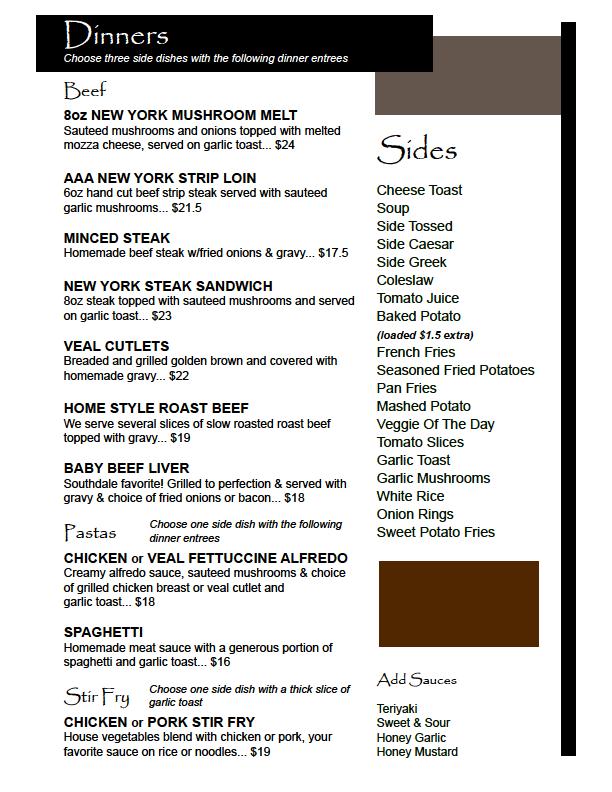 Click on any menu page below to view full size.